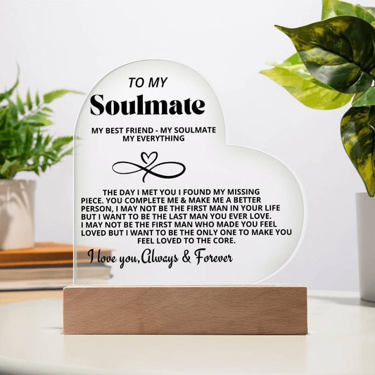 To My Soulmate "My Best friend-My Soulmate- My Everything" Acrylic Heart with Base