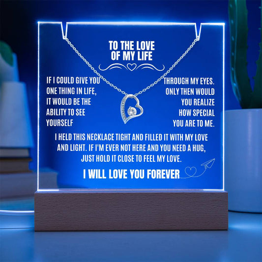 Eternal Love and Light: Acrylic Plaque with Forever Love Necklace