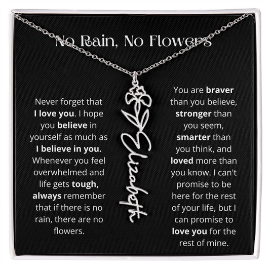 No Rain - No Flowers - Never Forget That I Love You | Birth Flower Name Necklace