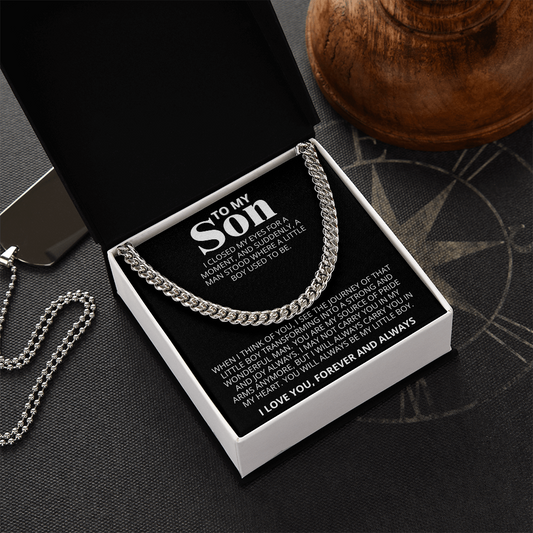 To My Son - Love Mom - Artisan Cross on Cuban Link Chain - Gift Set