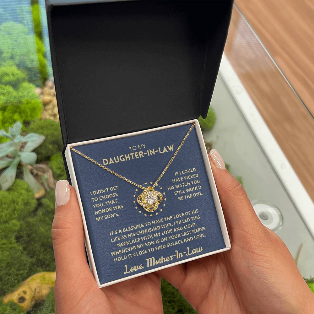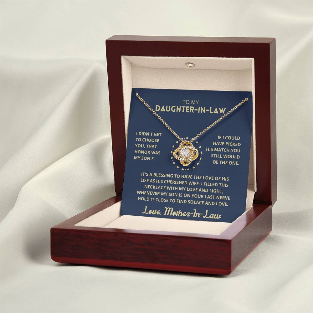 Imagine her reaction receiving this beautiful Love Knot Necklace representing an unbreakable bond with your daughter-in-law.