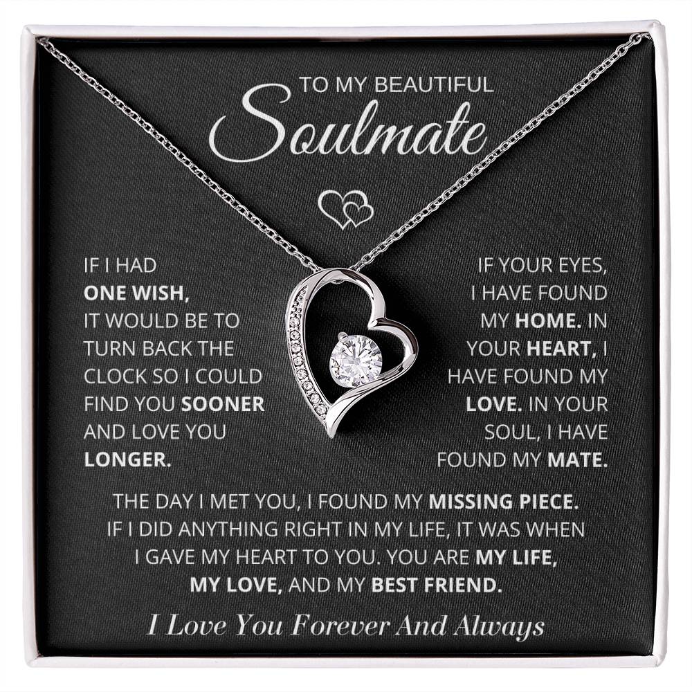 The Message Says: "To My Beautiful Soulmate - If I had one wish, it would be to turn back the clock so I could find you sooner and love you longer. In your eyes, I have found my love. In your soul, I have found my mate. The day I met you, I found my missing piece. If I did anything right in my life, it was when I gave my heart to you. You are my life, my love, and my best friend. I love you forever and always."
