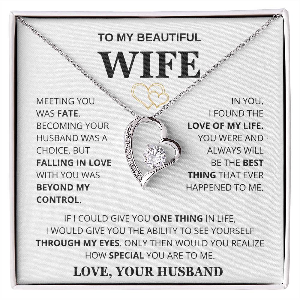 The Message Says: To My Beautiful Wife - "Meeting you was fate. Becoming your husband was a choice, but falling in love with you was beyond my control. In you, I found the love of my life. You were and always will be the best thing that ever happened to me. If I could give you one thing in life, it would be the ability to see yourself through my eyes. Only then would you realize how special you are to me. Love, Your Husband."