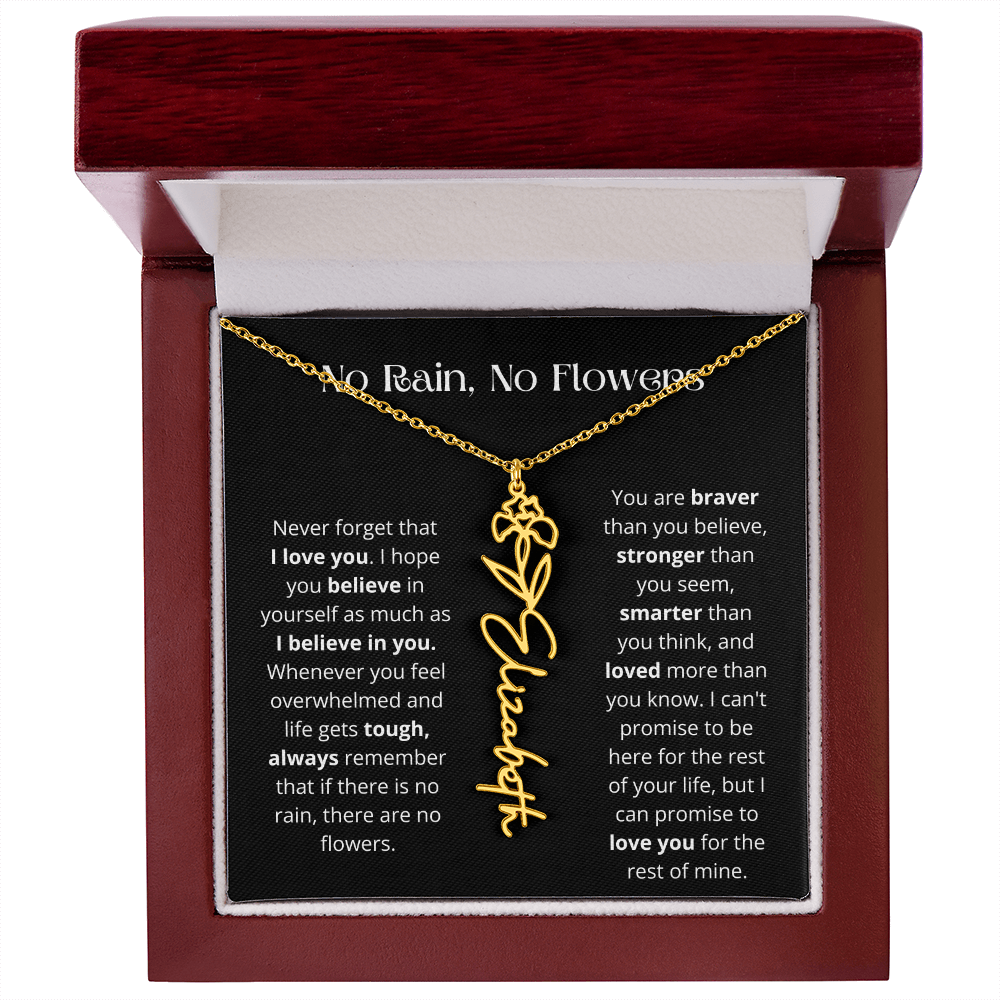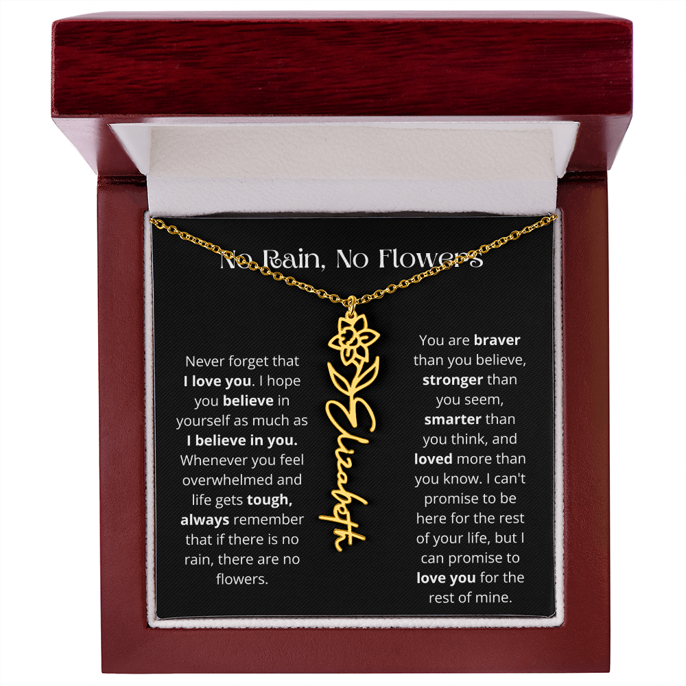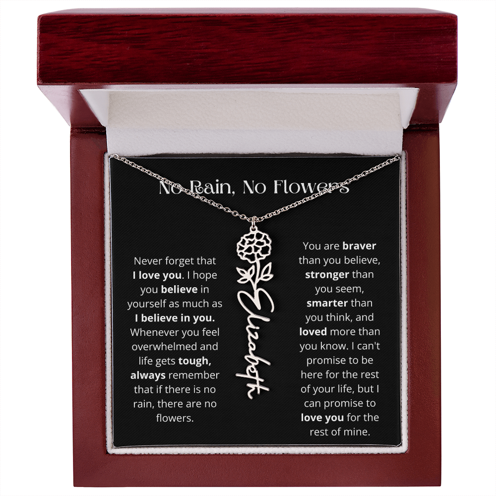 No Rain - No Flowers - Never Forget That I Love You | Birth Flower Name Necklace