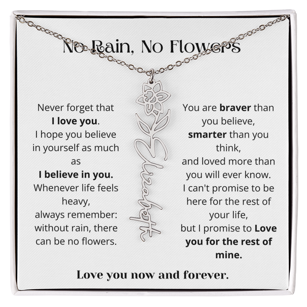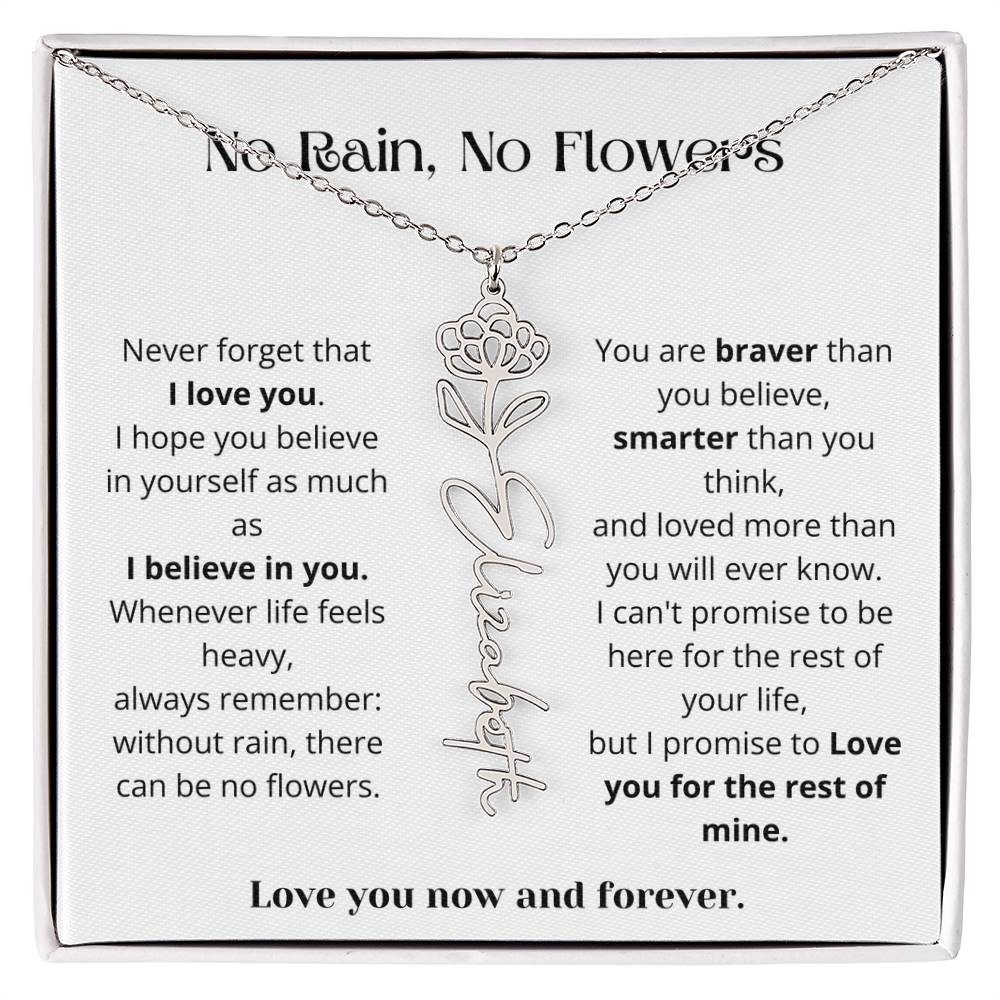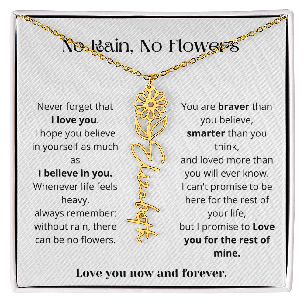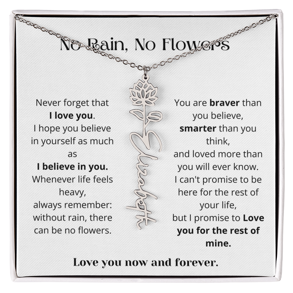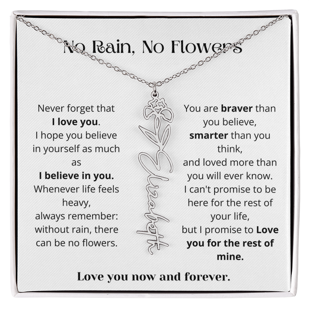 No Rain No Flowers - Love You Now And Forever - Flower Name Necklace