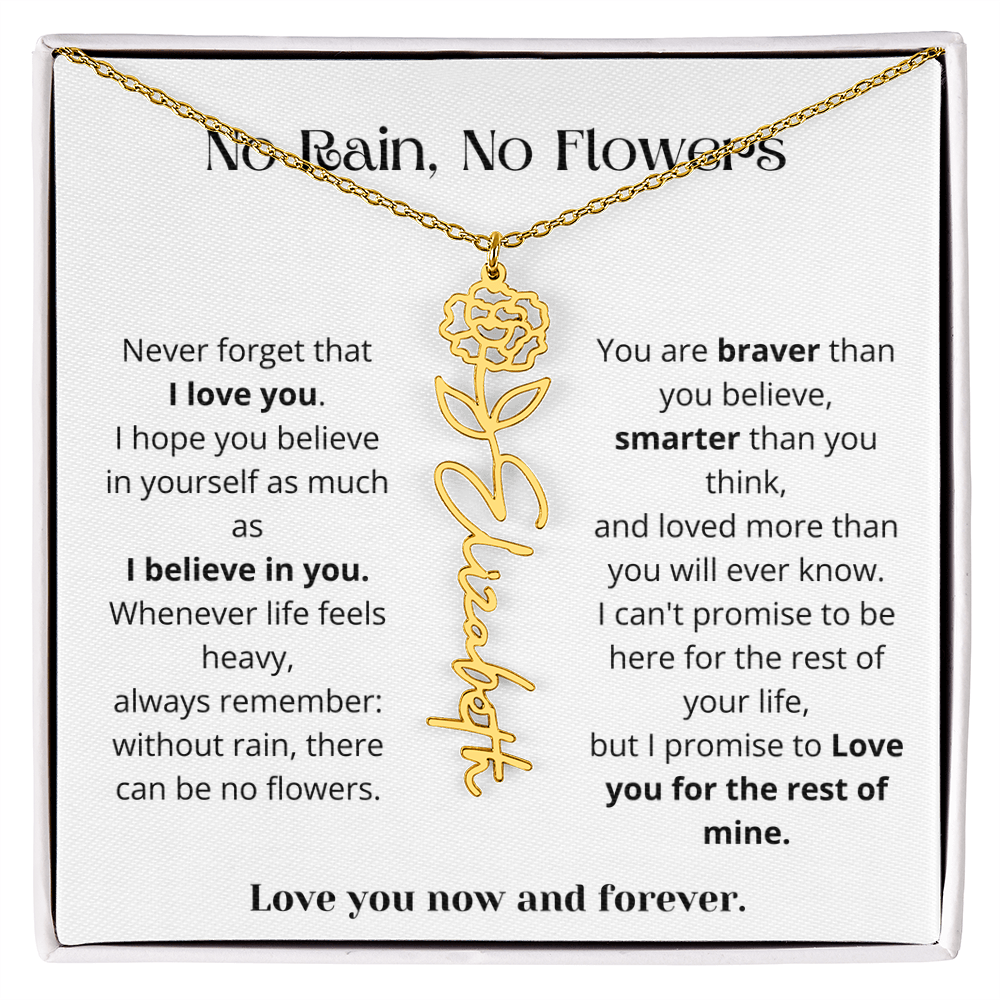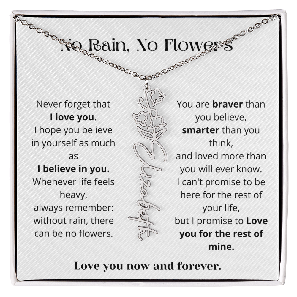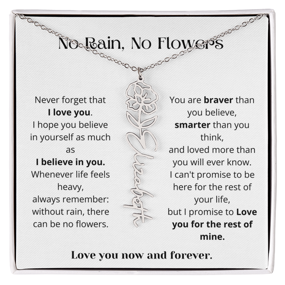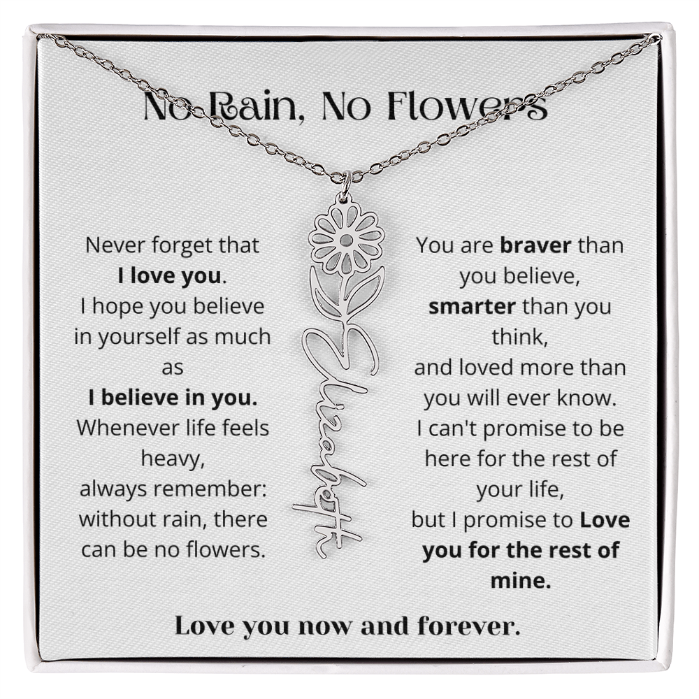 No Rain No Flowers - Love You Now And Forever - Flower Name Necklace