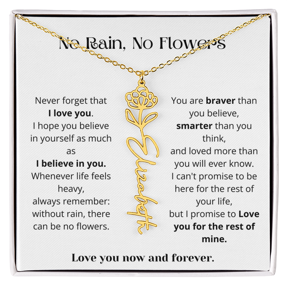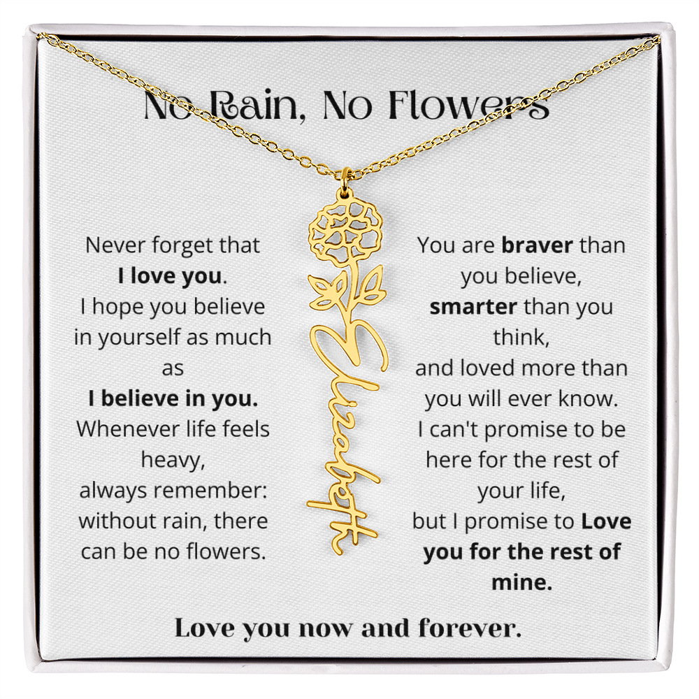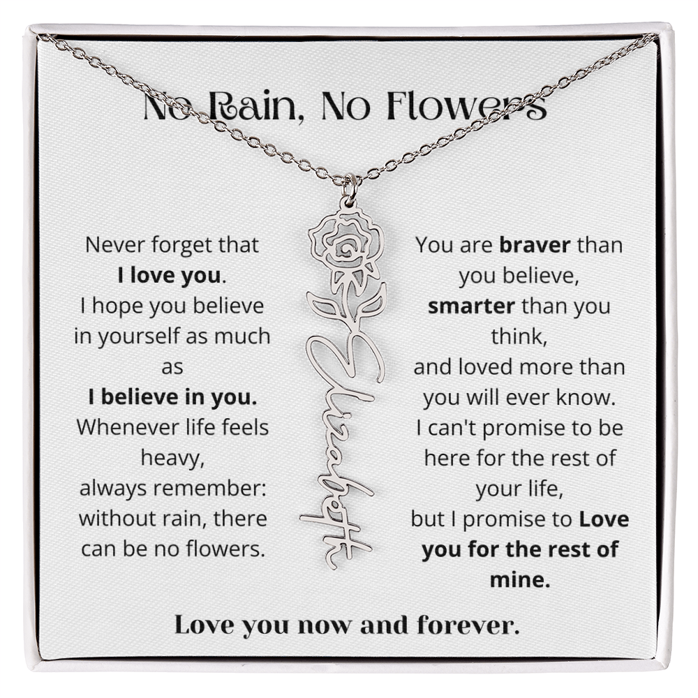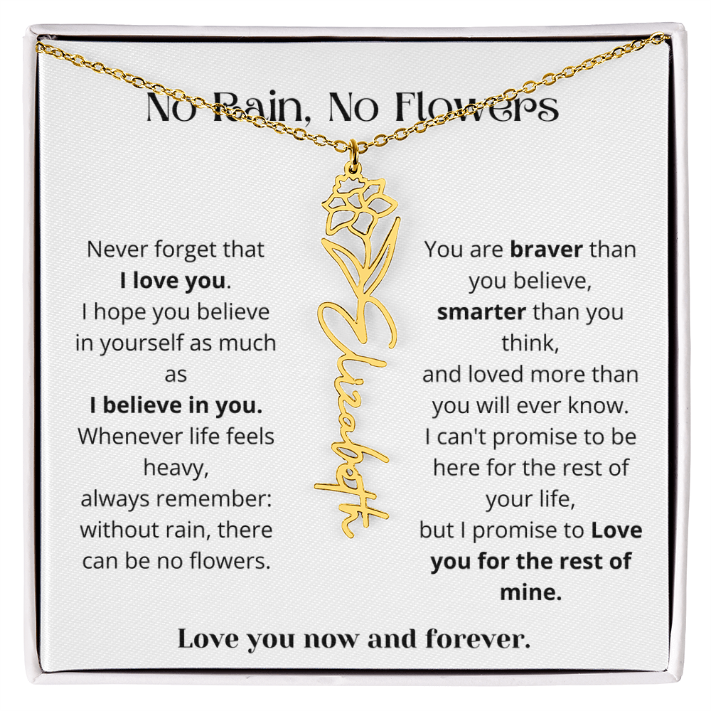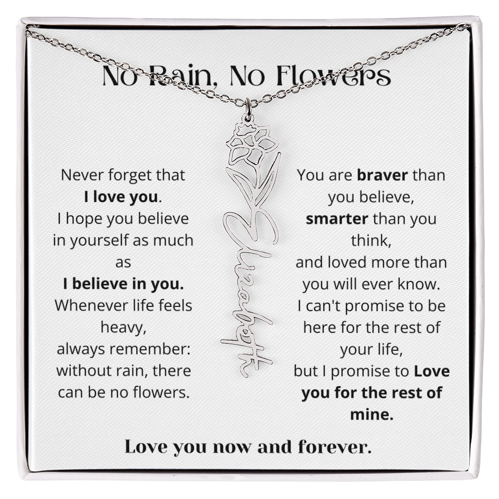 No Rain No Flowers - Love You Now And Forever - Flower Name Necklace