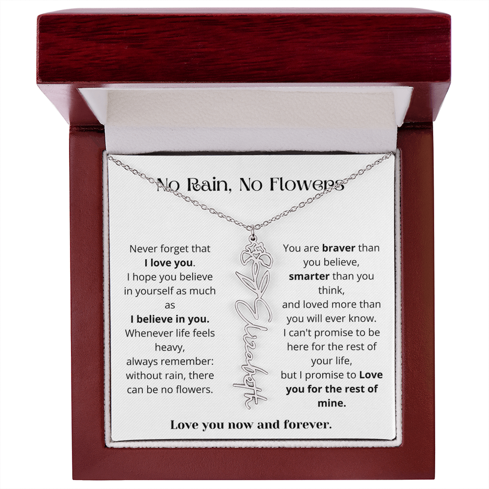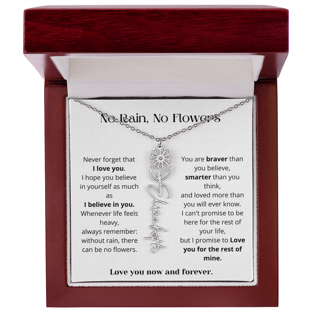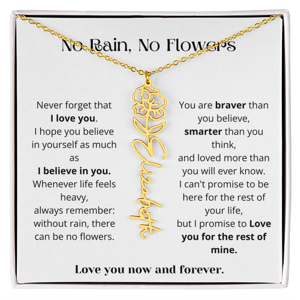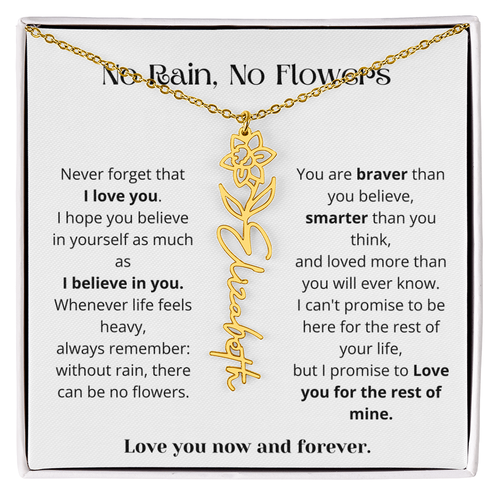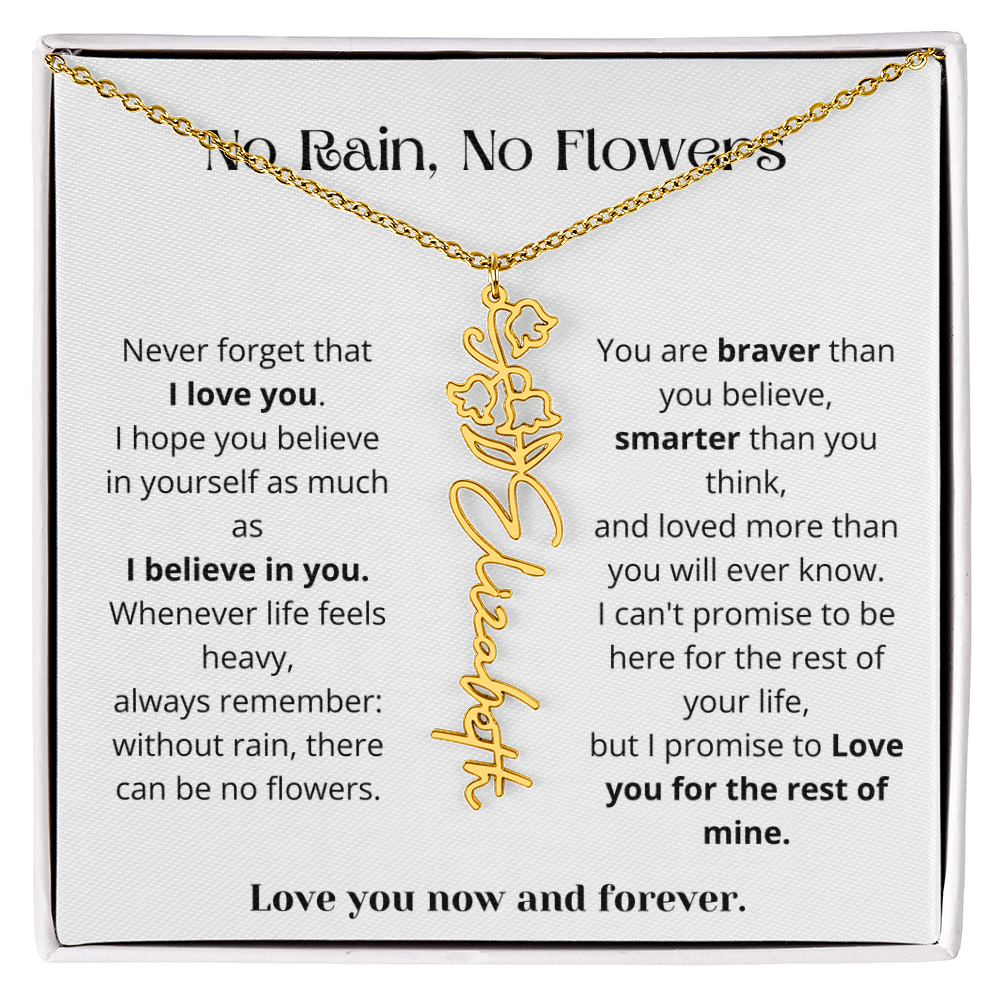 No Rain No Flowers - Love You Now And Forever - Flower Name Necklace