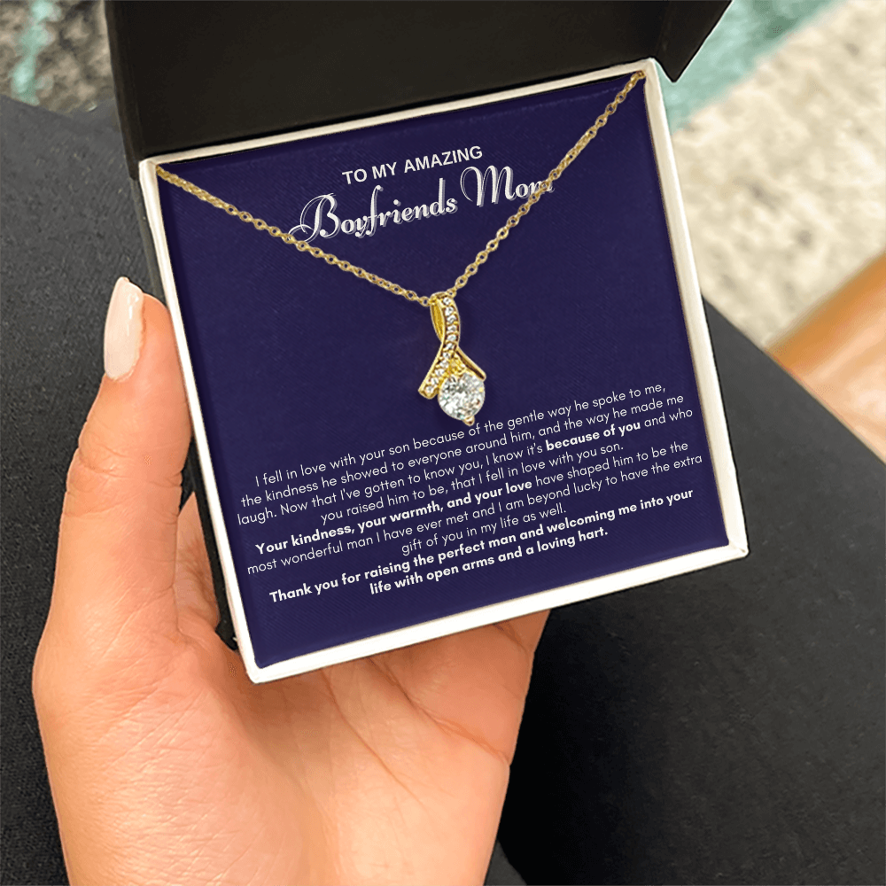 Gift your boyfriend's mom something unique and meaningful. With our "To My Amazing Boyfriend's Mom" necklace, you're gifting more than a piece of jewelry.