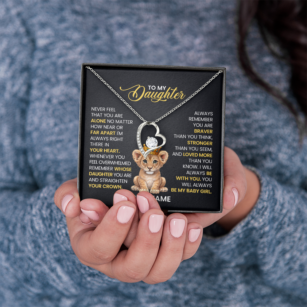 💌 Message Card (Sign-Off Can Be Personalized): TO MY DAUGHTER: NEVER FEEL THAT YOU ARE ALONE. NO MATTER HOW NEAR OR FAR APART, I'M ALWAYS RIGHT THERE IN YOUR HEART. WHENEVER YOU FEEL OVERWHELMED, REMEMBER WHOSE DAUGHTER YOU ARE AND STRAIGHTEN YOUR CROWN. ALWAYS REMEMBER: YOU ARE BRAVER THAN YOU THINK, STRONGER THAN YOU SEEM, AND LOVED MORE THAN YOU KNOW. I WILL ALWAYS BE WITH YOU. YOU WILL ALWAYS BE MY BABY GIRL. Love, [Your Name]"