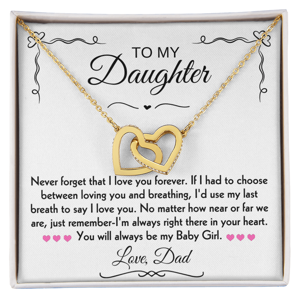 Give your Daughter the gift that symbolizes your never-ending love. Featuring two lovely hearts embellished with cubic zirconia crystals, this Interlocking Hearts necklace is the perfect and unique gift for that special someone this holiday season.
