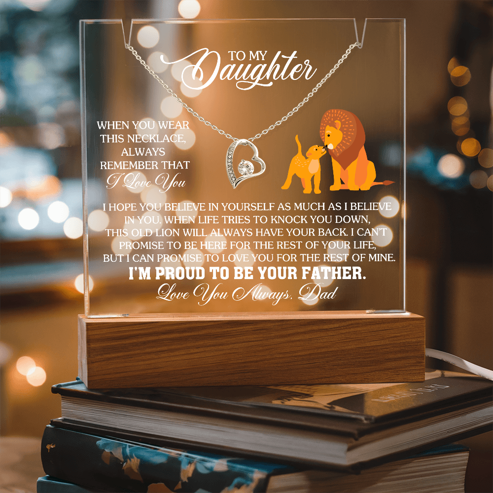 💌 Message Card: "To My Daughter: WHEN YOU WEAR THIS NECKLACE, ALWAYS REMEMBER THAT I Love You I HOPE YOU BELIEVE IN YOURSELF AS MUCH AS I BELIEVE IN YOU. WHEN LIFE TRIES TO KNOCK YOU DOWN, THIS OLD LION WILL ALWAYS HAVE YOUR BACK. I CAN'T PROMISE TO BE HERE FOR THE REST OF YOUR LIFE, BUT I CAN PROMISE TO LOVE YOU FOR THE REST OF MINE. I'M PROUD TO BE YOUR FATHER. Love You Always, Dad"