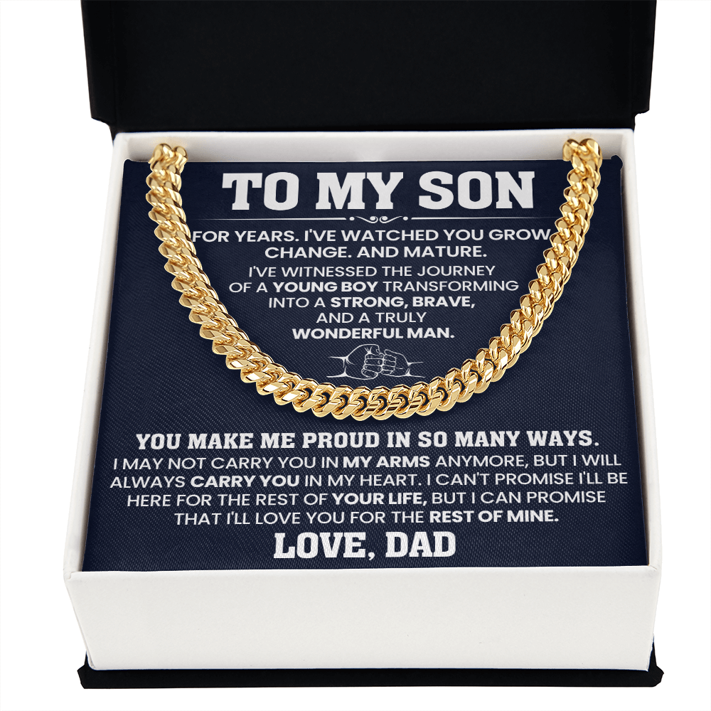 Whether you wear it to dress up or carry it as a reminder of who you are, this chain belongs with you. Because no matter how far life takes you, you’ll always be my son, and I’ll always have your back.