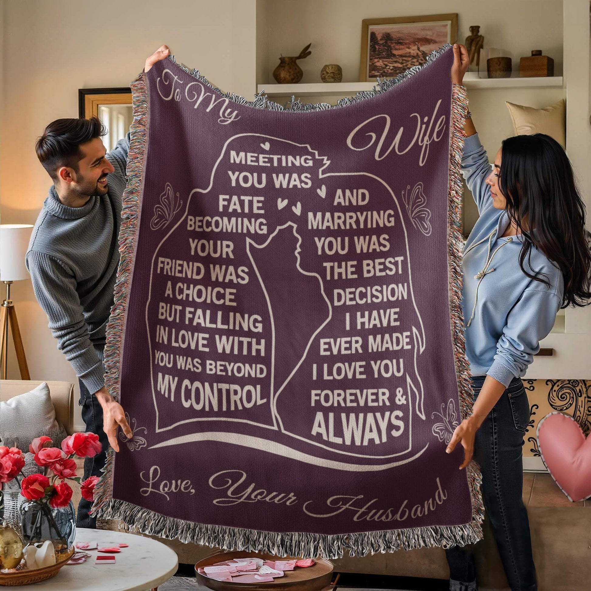 Create a unique keepsake with our Heirloom Artwork Woven Blanket. This custom product is lovingly woven on a loom with cozy 100% cotton yarn. It makes an ideal gift for your beloved partner, family members, or dear friends on special occasions like birthdays, anniversaries, or any event where you want to express your love and appreciation in an unforgettable way.